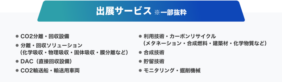 CCUS関連のソリューションをお持ちの方は、本展示会をぜひご活用ください。