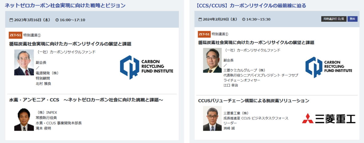 ●特徴3:CCUSをテーマにした特別講演を開催!連日業界の第一人者が登壇します。