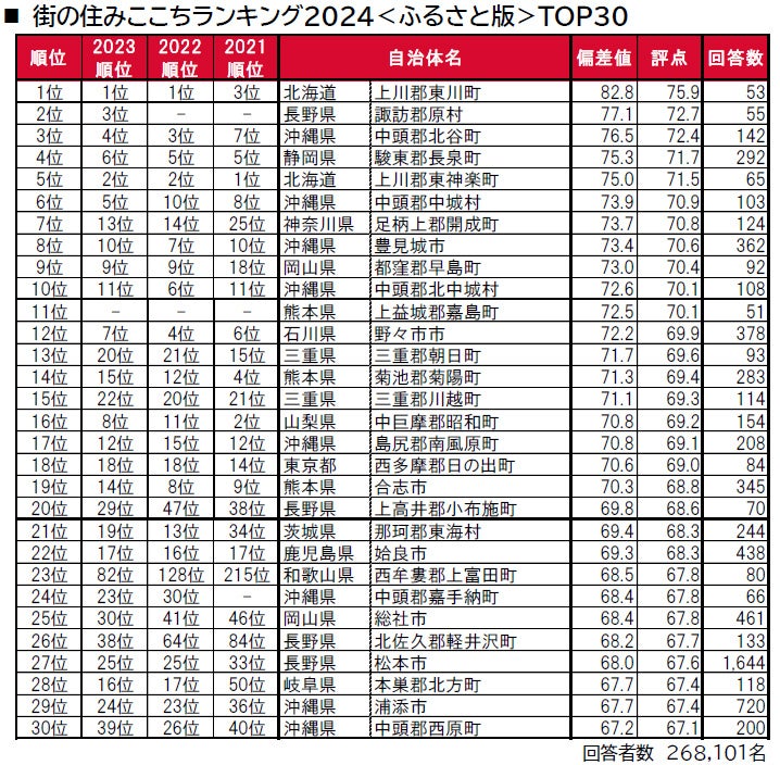 「街の住みここちランキング2024<ふるさと版>」(街の住みここちランキング特別集計)発表