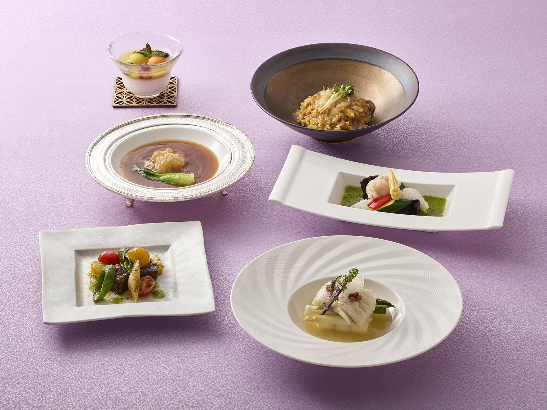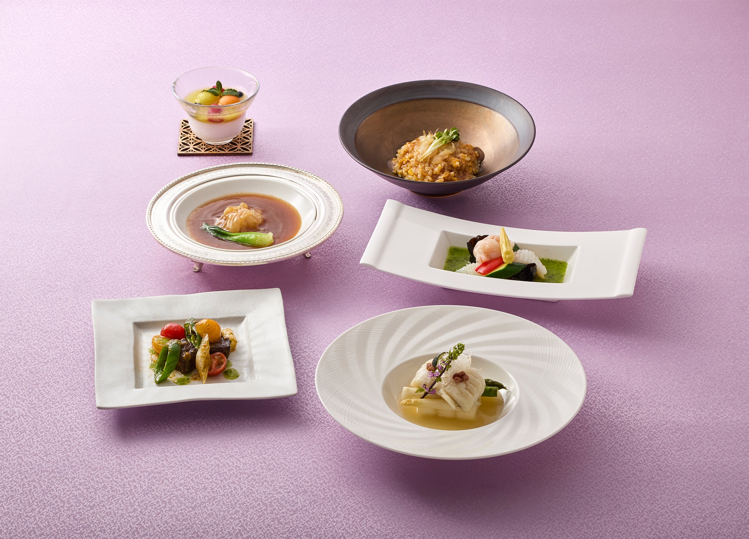 中国料理「桂花苑」では、フカヒレと伝統の上湯スープの香りをご堪能いただける、初夏限定コースをご用意いたしました。季節の訪れを感じさせる食材を織り込み、軽やかさと味わいの深みをお楽しみいただける品々が並びます。