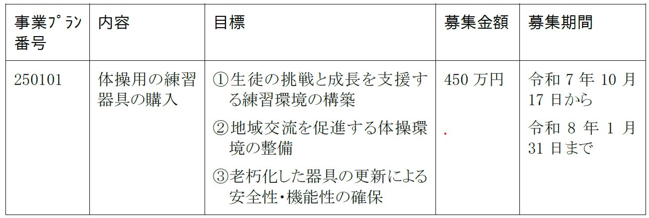 新城高等学校で体操用の練習器具を購入するための寄附募集を開始します