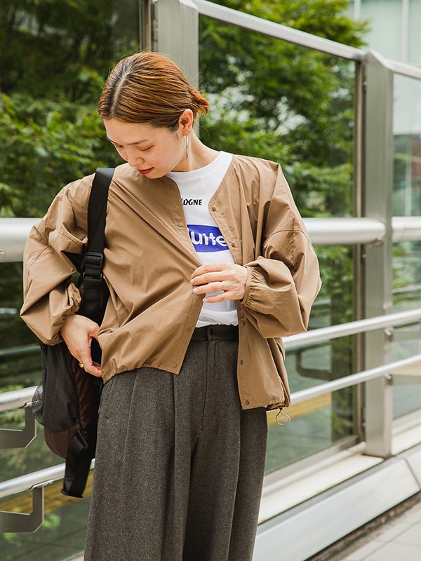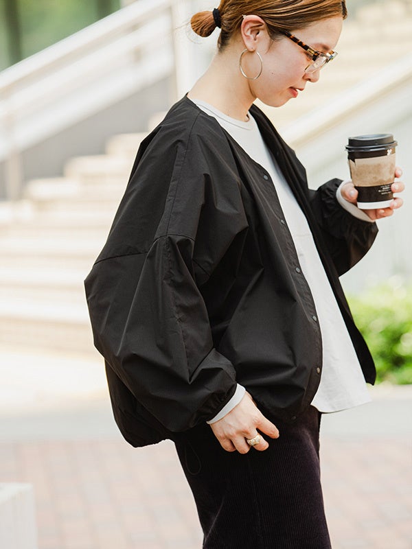 ドルマンスリーブのオーバーサイズシルエットですが軽量で持ち歩きにもかさ張らず、シワにもならないので、まだ暑い時期の日除け、涼しくなってからの羽織としてロングシーズン活躍するアイテムです。