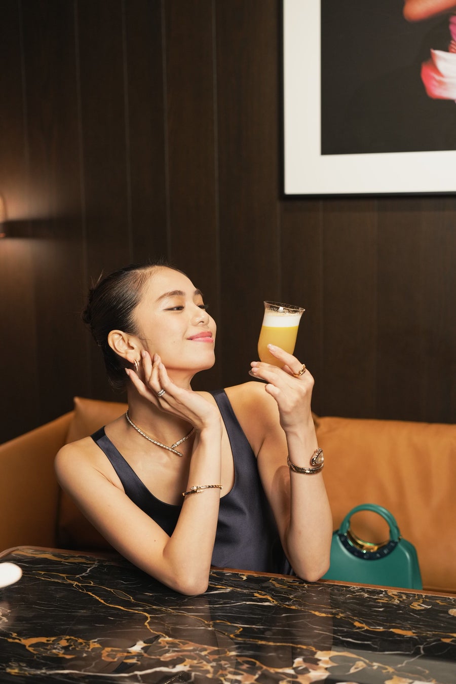 ブルガリ ホテル 東京の最上階に位置する「ブルガリ バー」にて2023年9月21日(木)、世界のトップバーテンダーを迎えたカクテルイベント「Symposia (シンポジア)」が開催され、モデル・女優の佐藤晴美さんが、ブルガリのジュエリーやウォッチ、バッグとともにイベントに輝きを添えました。