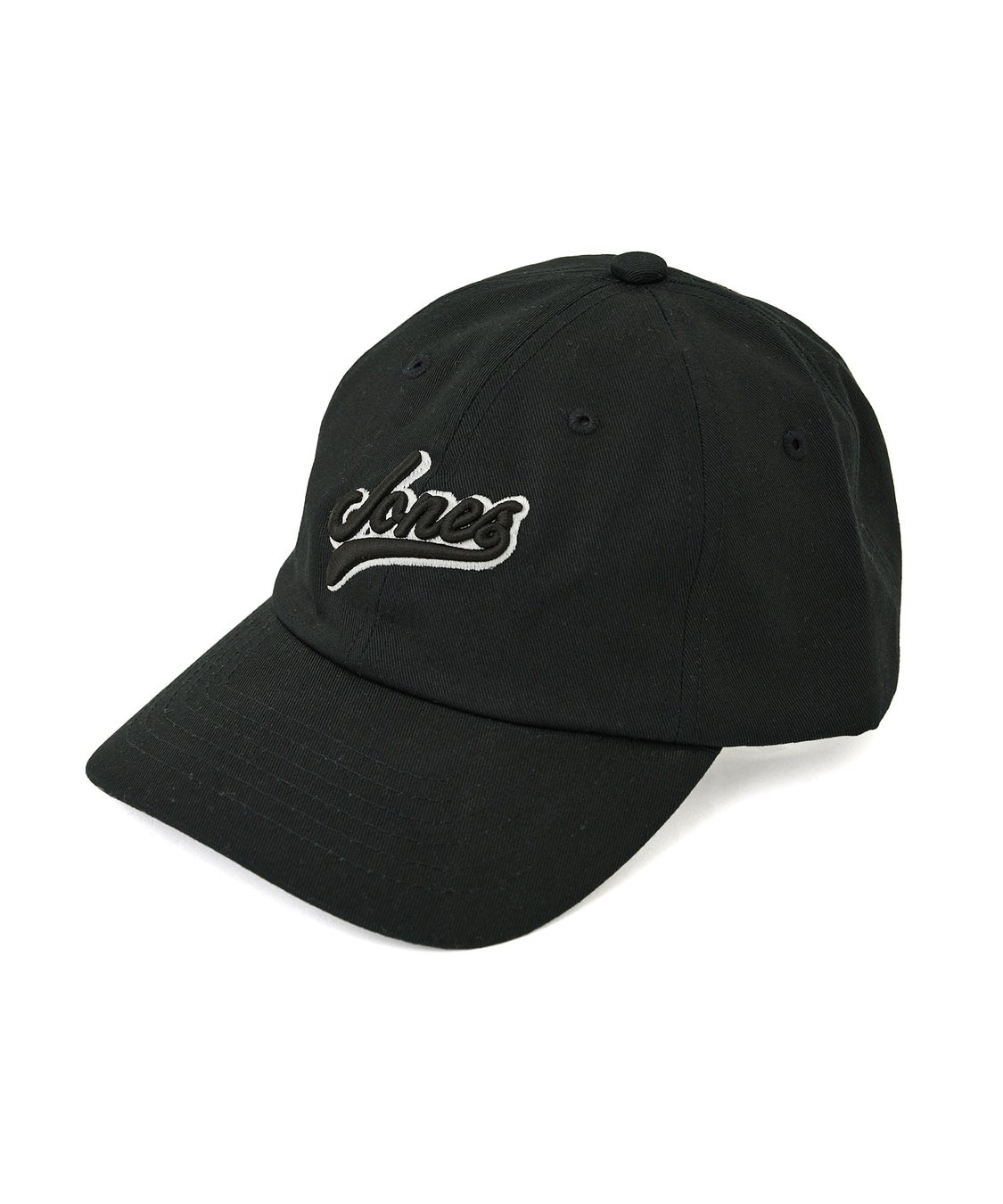 フロントには配色で縁取った「JONES」ロゴの立体刺繍、バックには「JUN&ROPÉ」のロゴ刺繍を配したベーシックなツイルキャップ。クリップアジャスター付きでサイズの調節が可能。