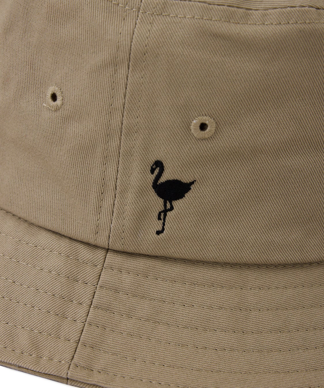 フロントに「JONES」モチーフの刺繍を、サイドには「JUN&ROPÉ」のブランドアイコンであるフラミンゴの刺繍を配した、シンプルながらもシルエットにこだわったバケットハット。光沢感のあるツイル素材を使用した、耐久性にも優れたアイテム。