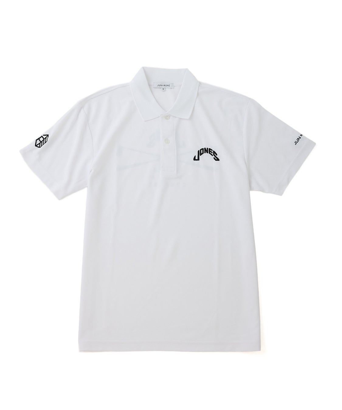 「JONES」のモチーフと「JUN&ROPÉ」 ロゴをプリントと刺繍で配したドライタッチのカノコポロシャツ。