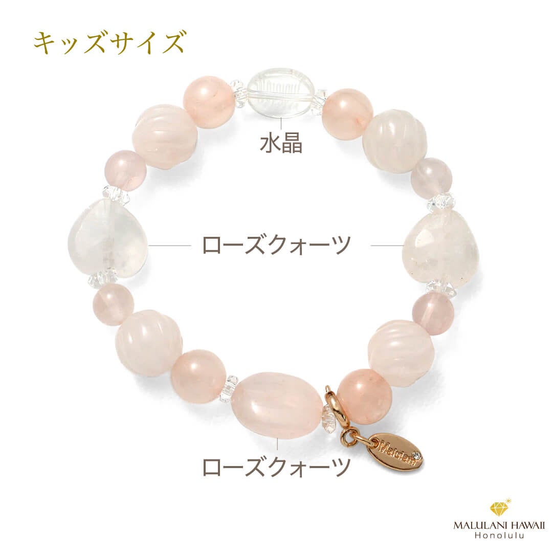 無条件の愛に包み込まれるような、柔らかなエネルギー満載のブレスレットは、恋愛成就を願う方はもちろん、心身が疲れているとき、ホルモンバランスの調整などにもおすすめです。様々な世代の方に着けていただけるよう、キッズサイズもご用意しました。