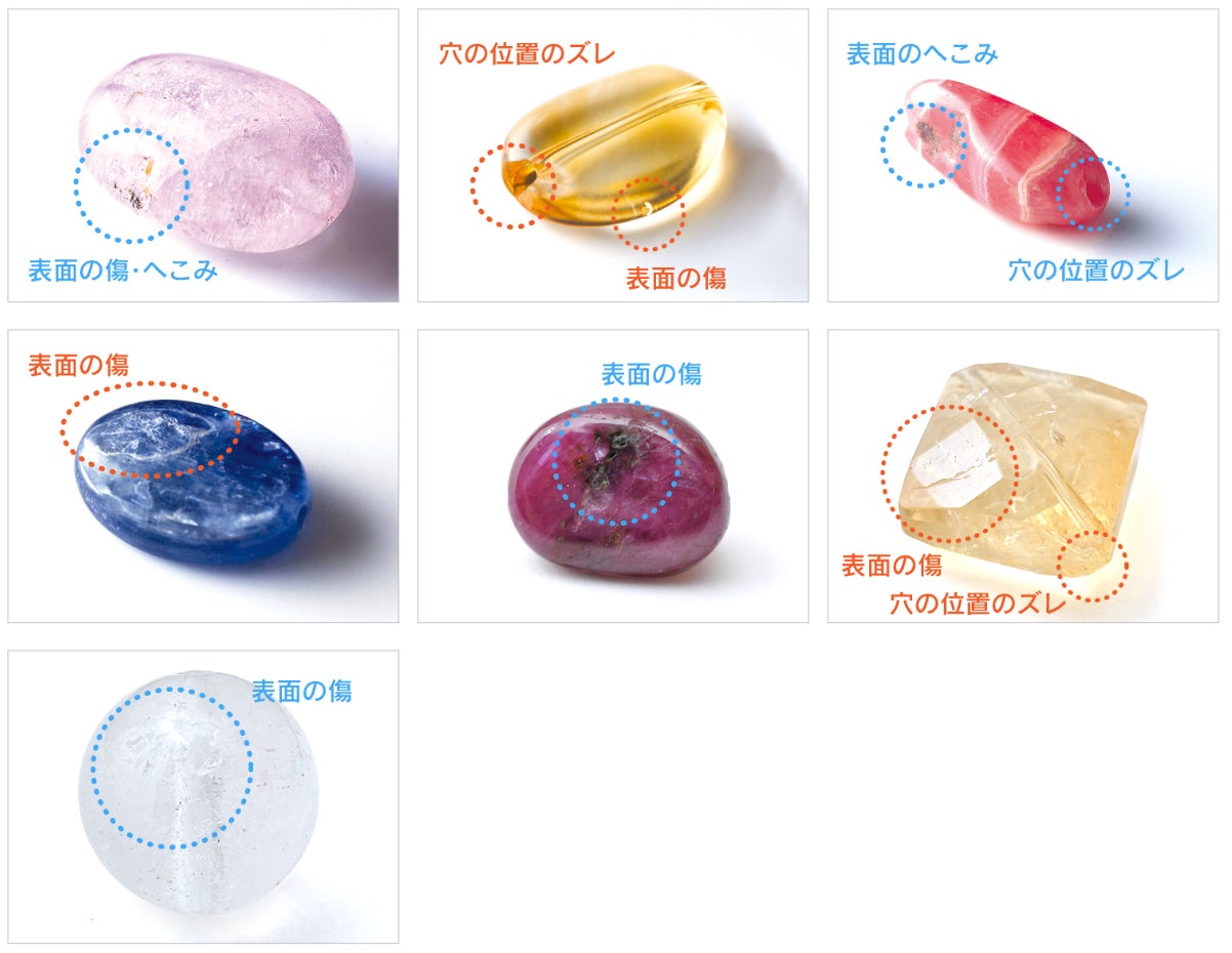 使用後すぐに割れる、人体に傷が付くなど、アクセサリーとして不適合のものは使用しておりません。