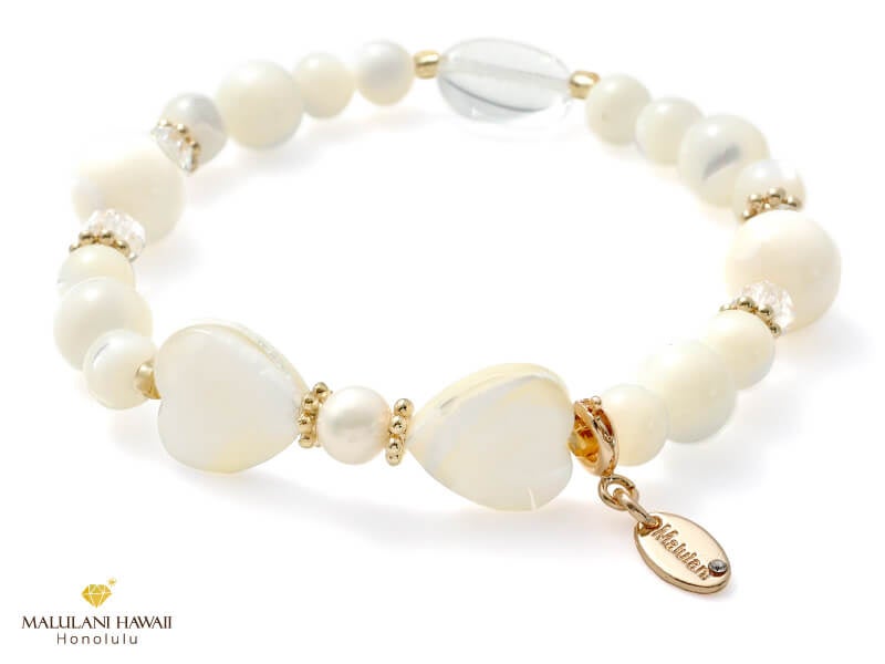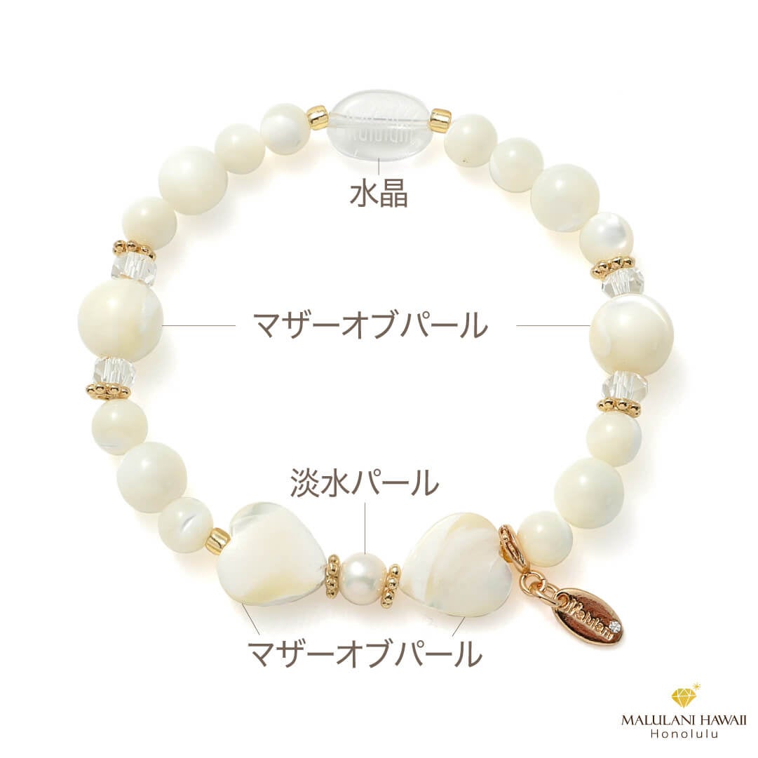 真珠を生み出す母貝、マザーオブパールをふんだんに使用した、優しい女性性に満ち溢れるブレスレット。