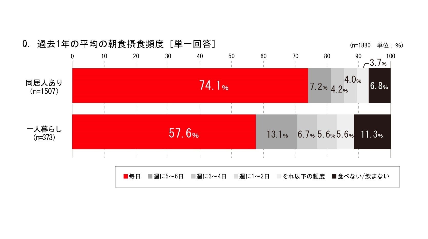 同居人がいる人は約7割(74.1%)が「朝食を毎日食べている」と回答