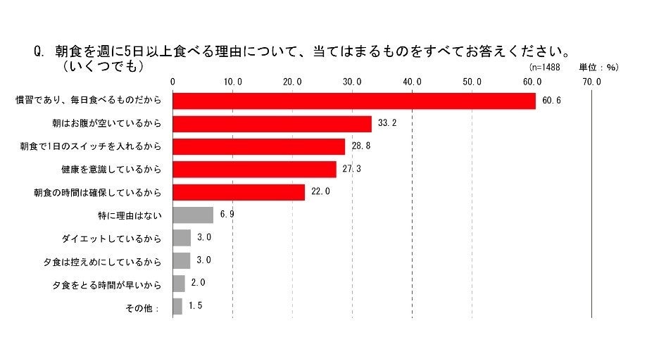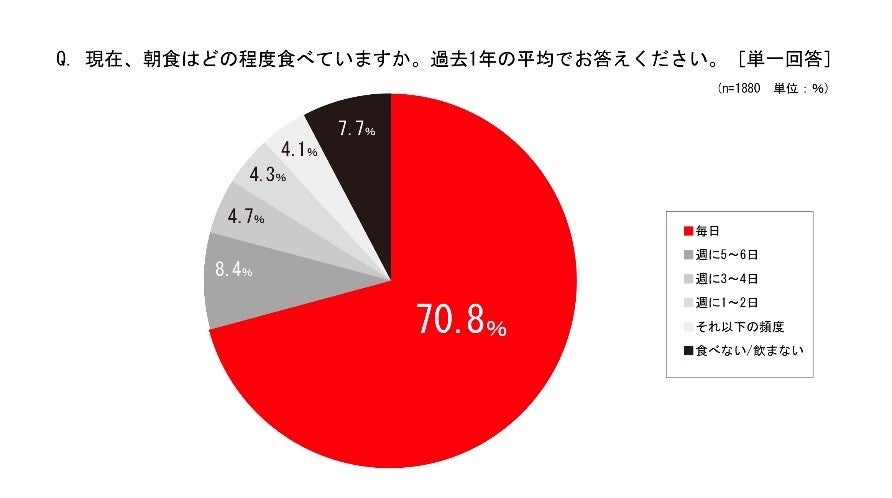 ■朝食は約7割(70.8%)が「毎日食べている」食べていると回答。朝食を食べる理由の1位は「習慣であり、毎日食べるものだから」(60.6%)。