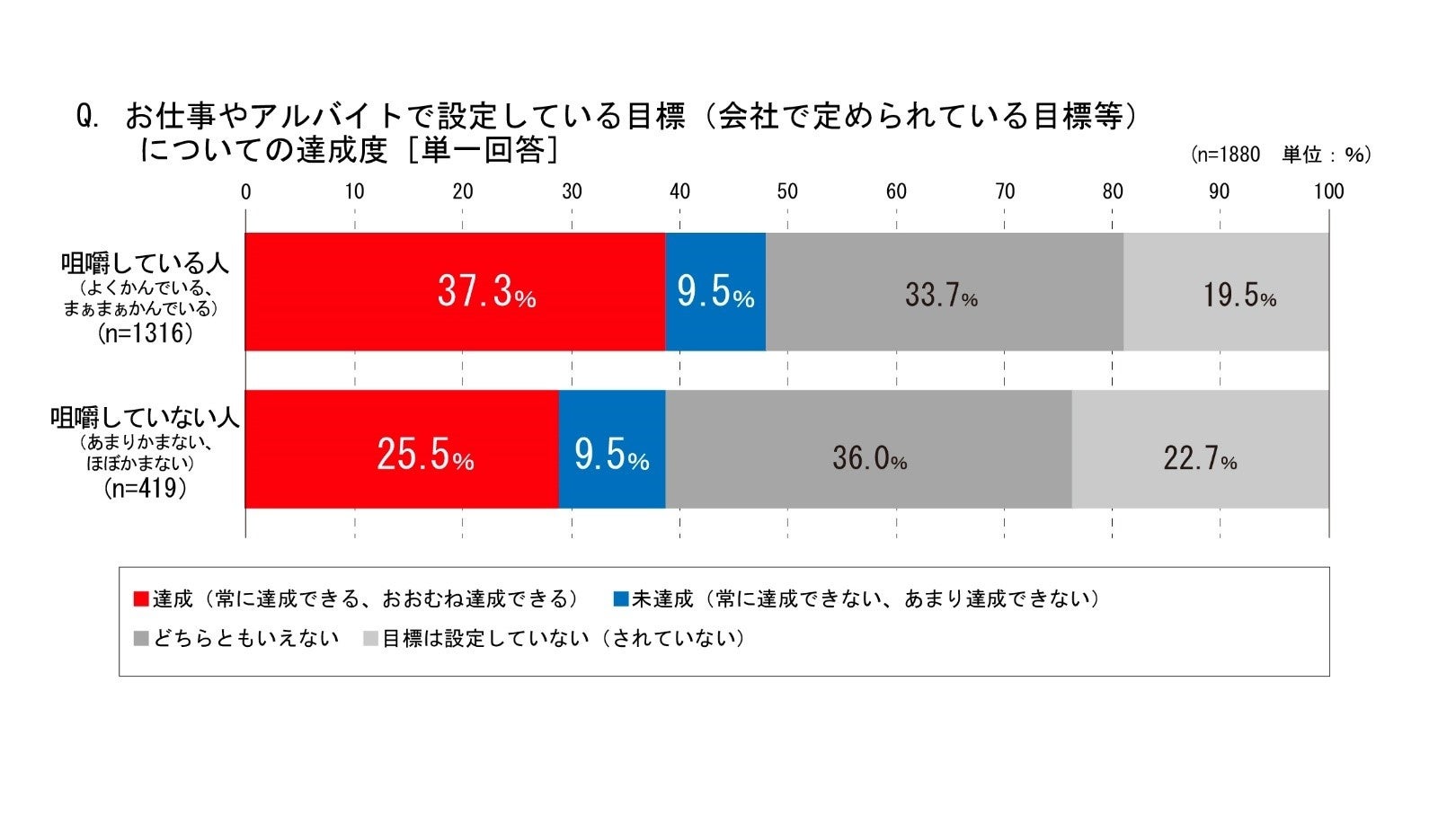朝食を噛んで食べると回答した人の3人に1人(37.3%)は「仕事の目標を達成している」と回答