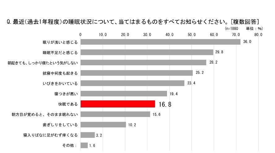 ※2 「最近、朝の起床時に自覚する症状はありますか。当てはあるものをいくつでもお知らせください。」について、回答選択肢【目覚めがすっきりする/頭がすっきりする/快調である/気分が良い/身体が軽い/特に自覚することはない】を『体調に問題が無い』と定義し、SA分析をした結果
