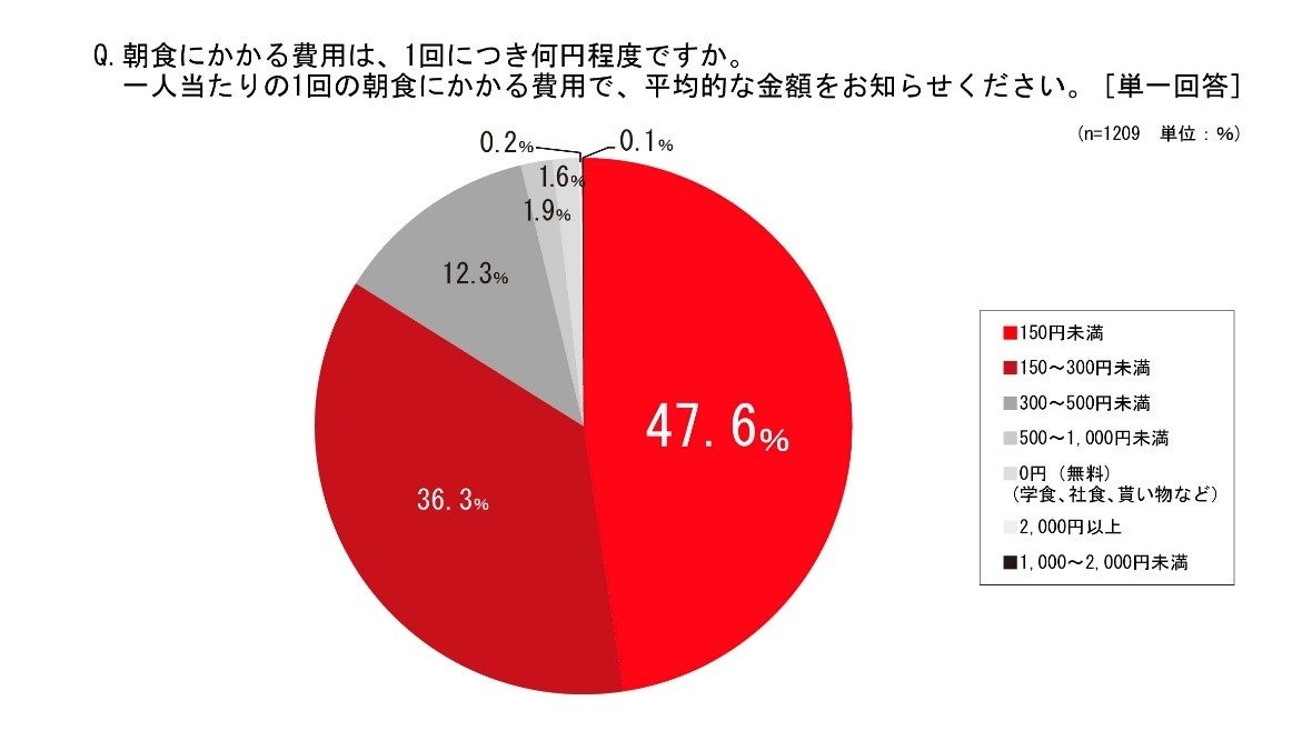 ■1回の朝食にかける費用は、300円未満が全体の8割を超える結果に。