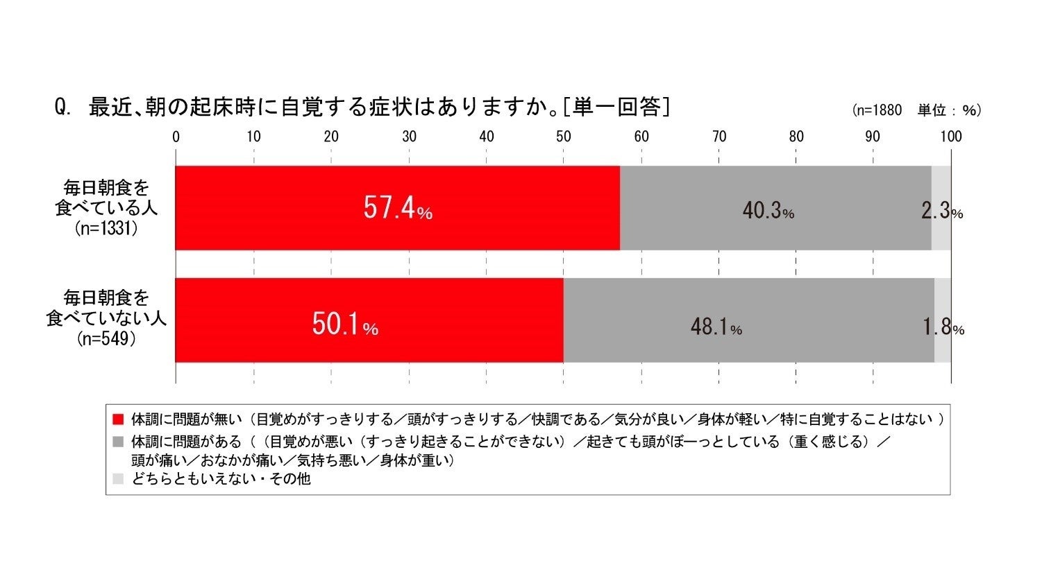 朝食を毎日食べている人のうち、約6割(57.4%)が「朝の起床時に体調への問題が無い」と回答