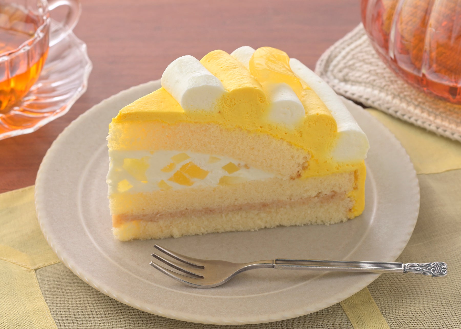 白桃と相性のよいピーチヨーグルト風味クリームと白桃ゼリーをふんわりスポンジでサンドし、上面に追熟白桃のコンポートを飾りました。白桃のとろける食感と上品な甘み、クリーム、スポンジが一体となって奏でる爽やかなハーモニーをお楽しみください。