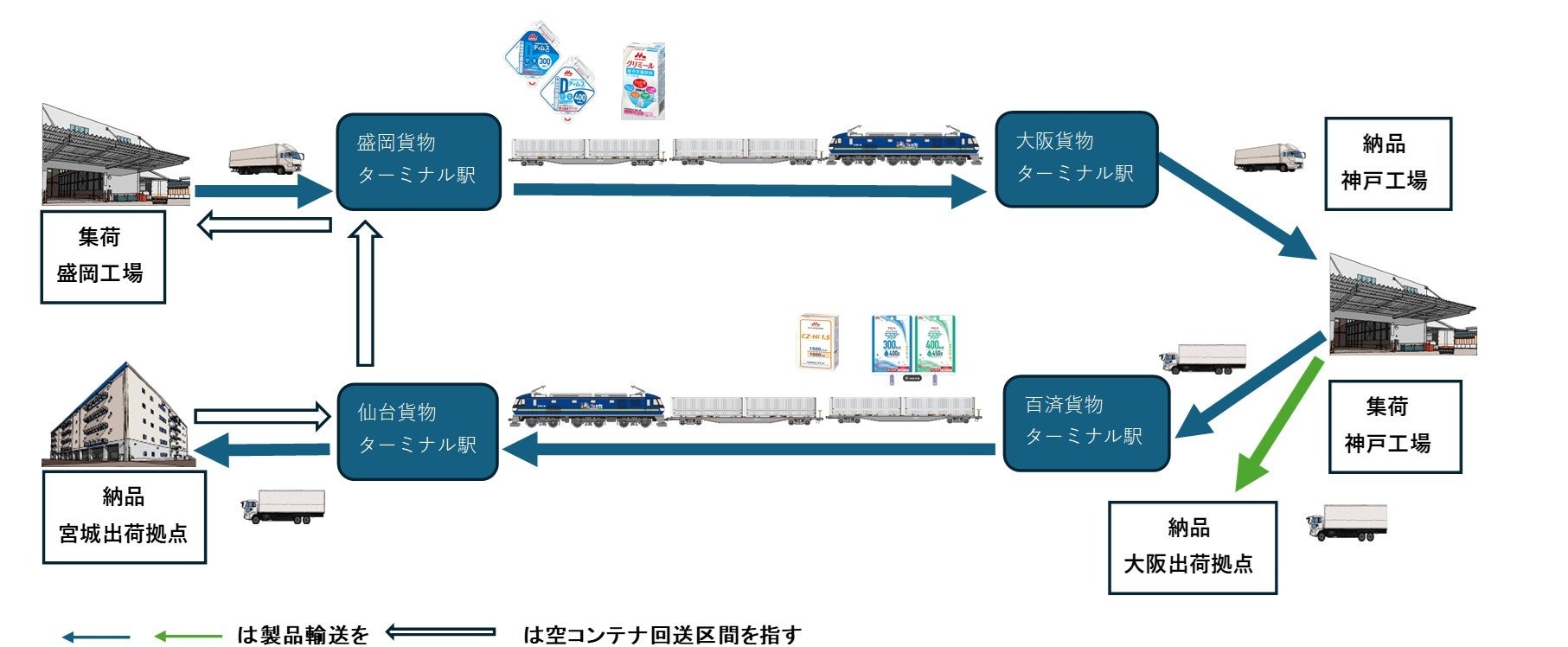 【森永乳業×日本通運×日本貨物鉄道×日本石油】輸送盛岡・仙台~神戸の流動食※1輸送のモーダルシフト化31フィートスーパーURコンテナ※2を活用したラウンド輸送※3開始