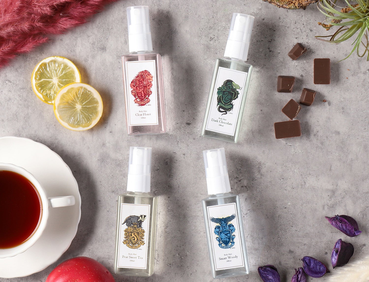 「ハリー・ポッター マホウドコロ」にて、4寮の紋章と象徴動物のデザインが印象的な「クレストシリーズ」から各寮をイメージした香りのボディミストを12月23日(金)より発売!
