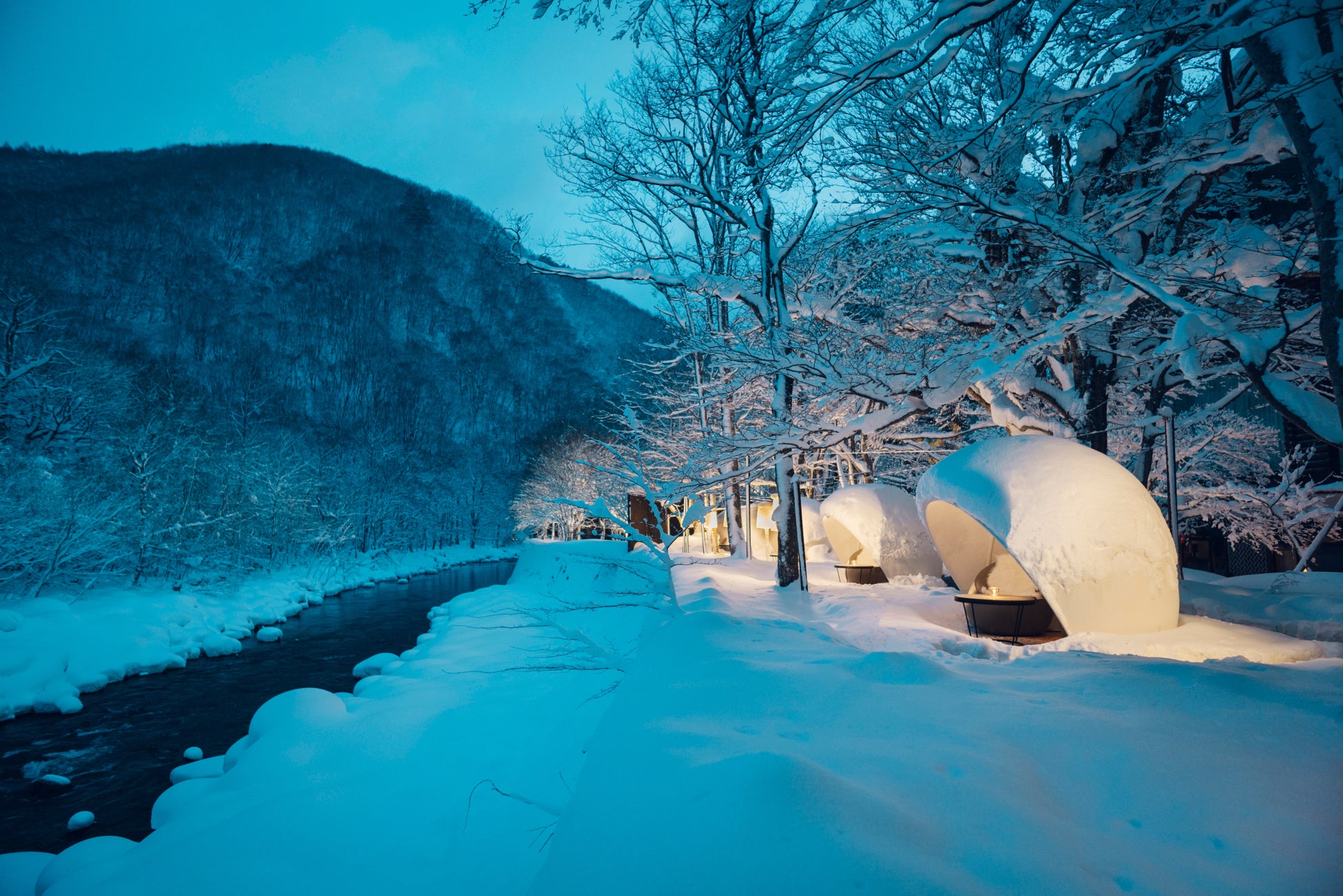 奥入瀬渓流沿いに建つ唯一のリゾートホテル(*3)。渓流が目の前に広がる露天風呂や岡本太郎作の巨大暖炉が印象的なロビーが癒しの空間を醸し出します。「渓流スローライフ」をコンセプトに心から満たされる滞在を演出します。