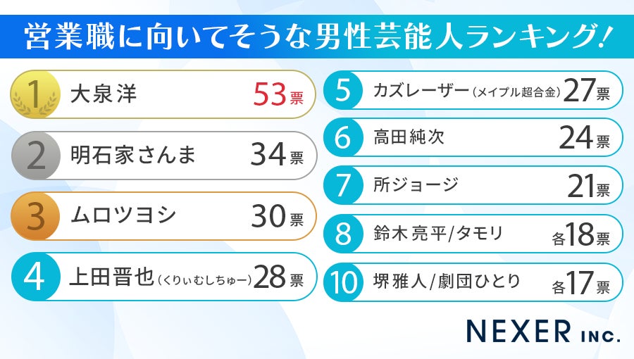 株式会社NEXER・営業に向いていそうな男性芸能人に関する調査