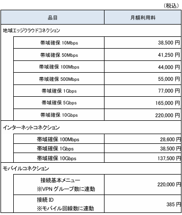 地域エッジクラウドコネクション、インターネットコネクション、モバイルコネクション3品目ともに2026年度中の提供を予定しております。