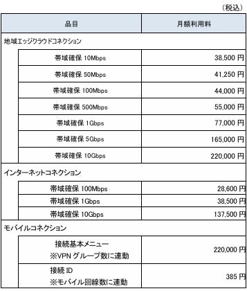 ※地域エッジクラウドコネクション・インターネットコネクションはVPNグループごと、モバイルコネクションはVPNグループごとおよびモバイル回線ごとに料金が発生します。