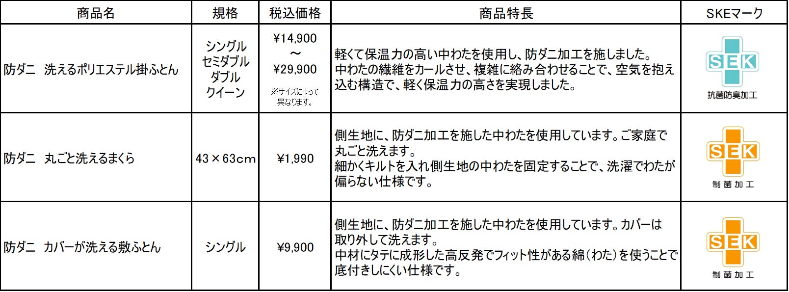□「防ダニ 丸ごと洗えるまくら」「防ダニ カバーが洗える敷ふとん」:SEK制菌加工基準をクリア