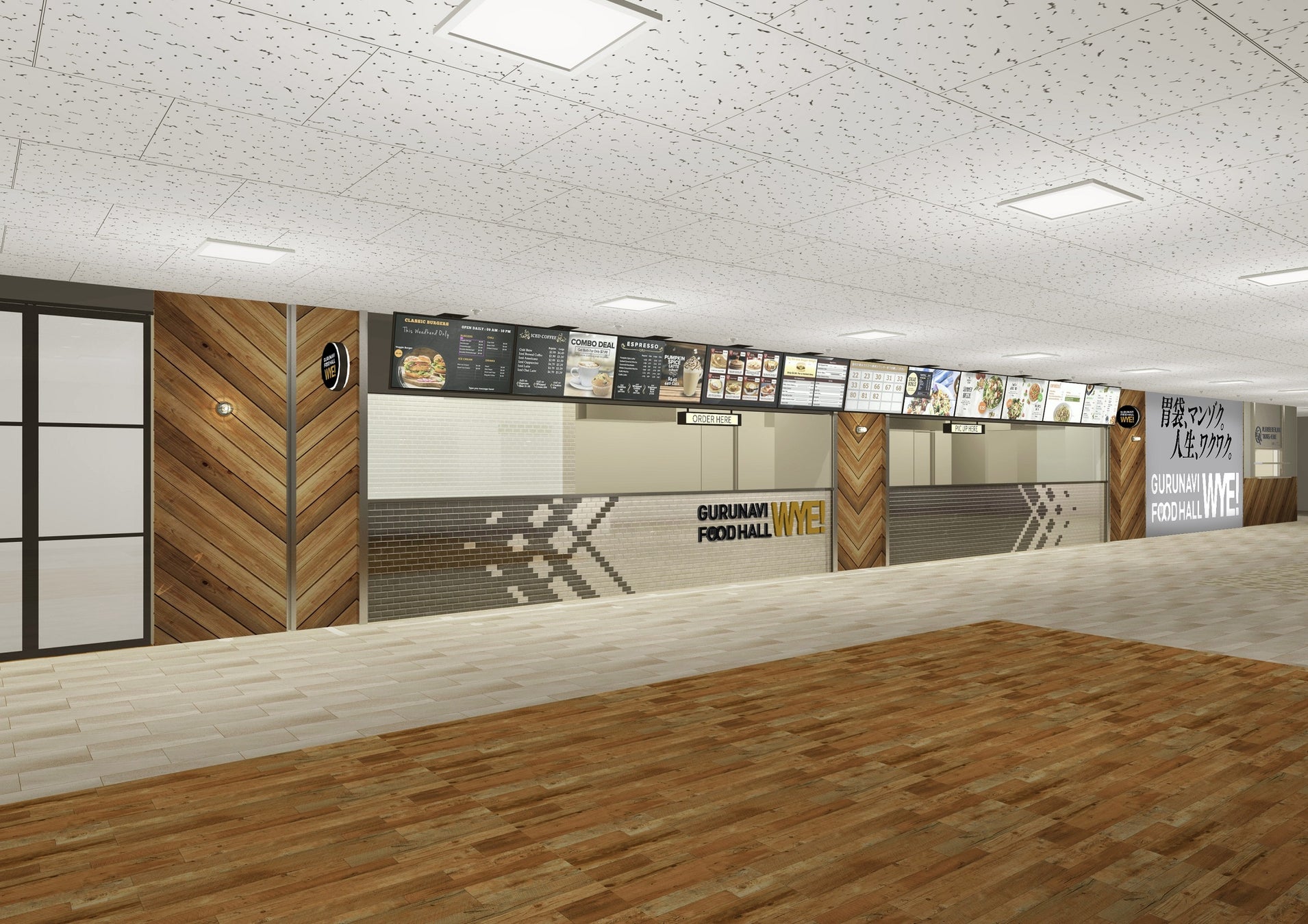 本事業は、飲食店、商業施設、ユーザーをつなぎ、「食」による継続的な賑わいの場を創出することを目的に、商業施設の飲食エリアにおいて、ぐるなびがコンセプト設計から飲⾷店誘致、店舗構築、フロア運営まで総合的にプロデュースする事業で、「地域の食の発信 新たな『おいしい』に出会える場所。」を共通コンセプトとして「GURUNAVI FOODHALL WYE」の全国展開を進めています。これまで天文館(鹿児島県鹿児島市)、栄(愛知県名古屋市)、天空橋(東京都大田区)、八戸(青森県八戸市)の商業施設において飲食エリアのプロデュースを行ってきました。