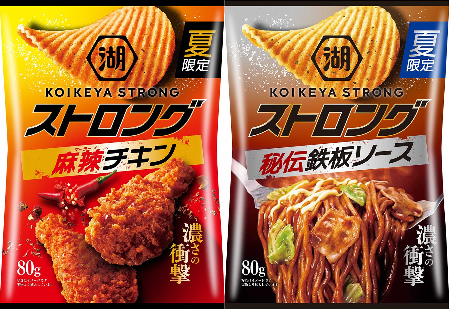 ガツンと夏の高刺激!「湖池屋ストロング ポテトチップス 秘伝鉄板ソース/麻辣チキン」 7月3日より、全国・全チャネルで発売開始
