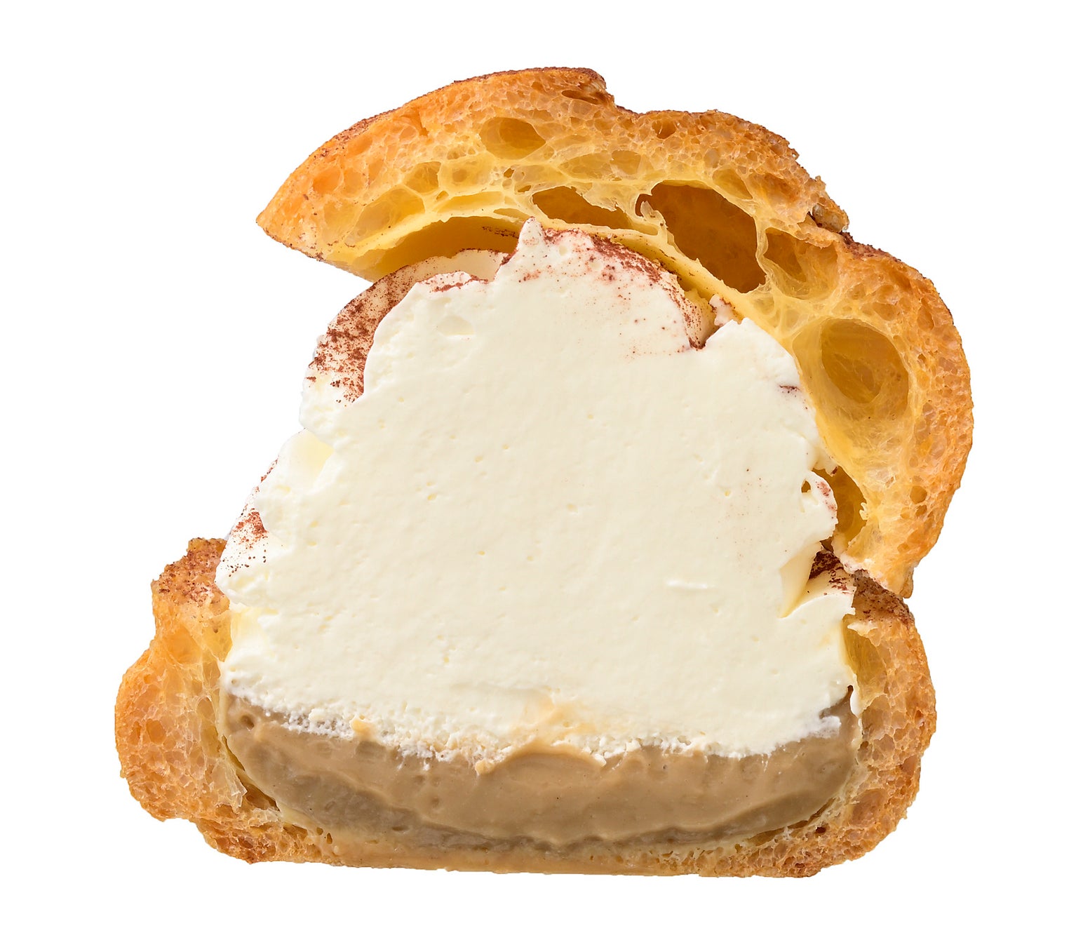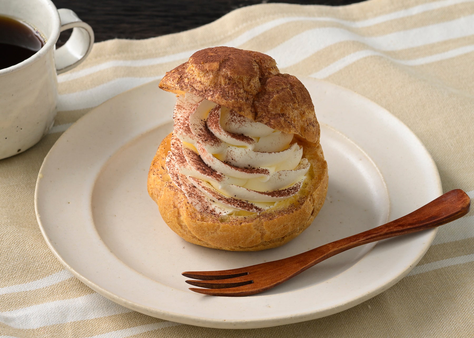 特長:コクのあるチーズクリーム&ほろ苦いコーヒーカスタードを、さっくり焼き上げたシュー皮にとじこめました。2つのクリームがとけ合い生まれる、ティラミスの味わいをお楽しみください。