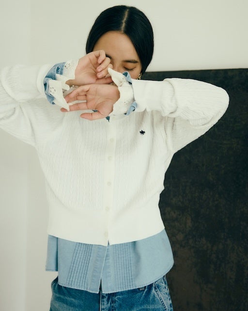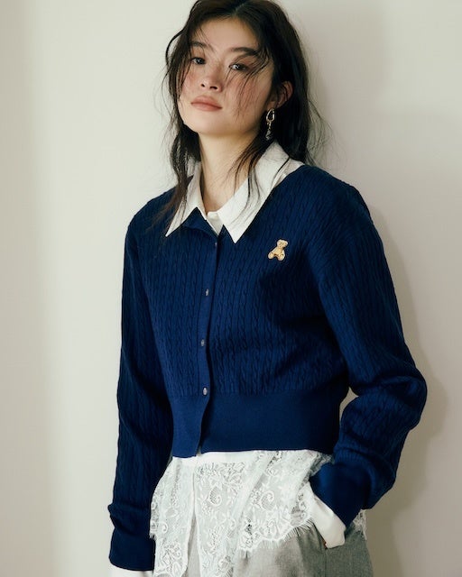 VIS別注ミニケーブルノーカラーカーディガン