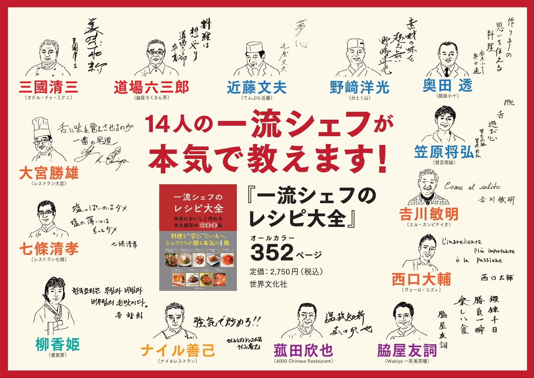道場六三郎さんをはじめ、料理界のレジェンド14人が贈る永久保存の200品。『一流シェフのレシピ大全』刊行