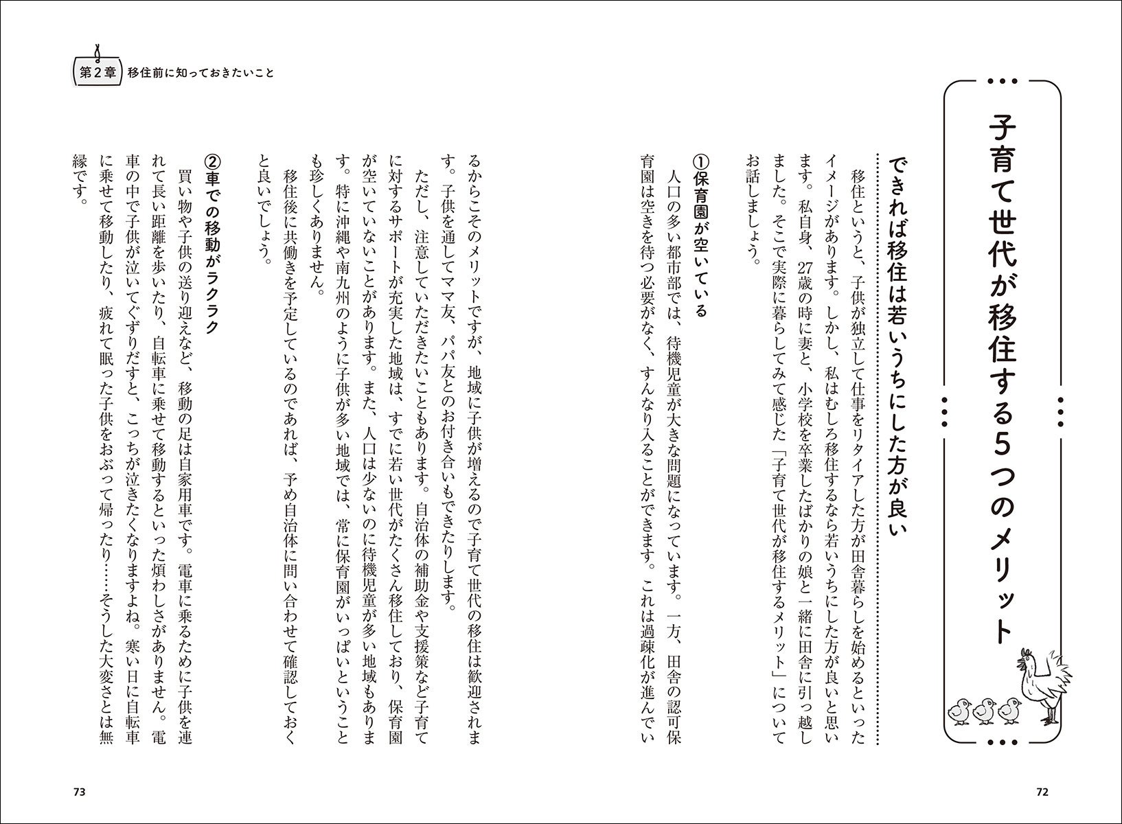 実際に東京から和歌山に移住した料理人の著者が、移住地を選ぶまでの経緯から、家探し、引っ越し、役場や地域の人とのコミュニケーション、子供の教育、お金のことまで、どんな情報や行動が重要かを伝えます。