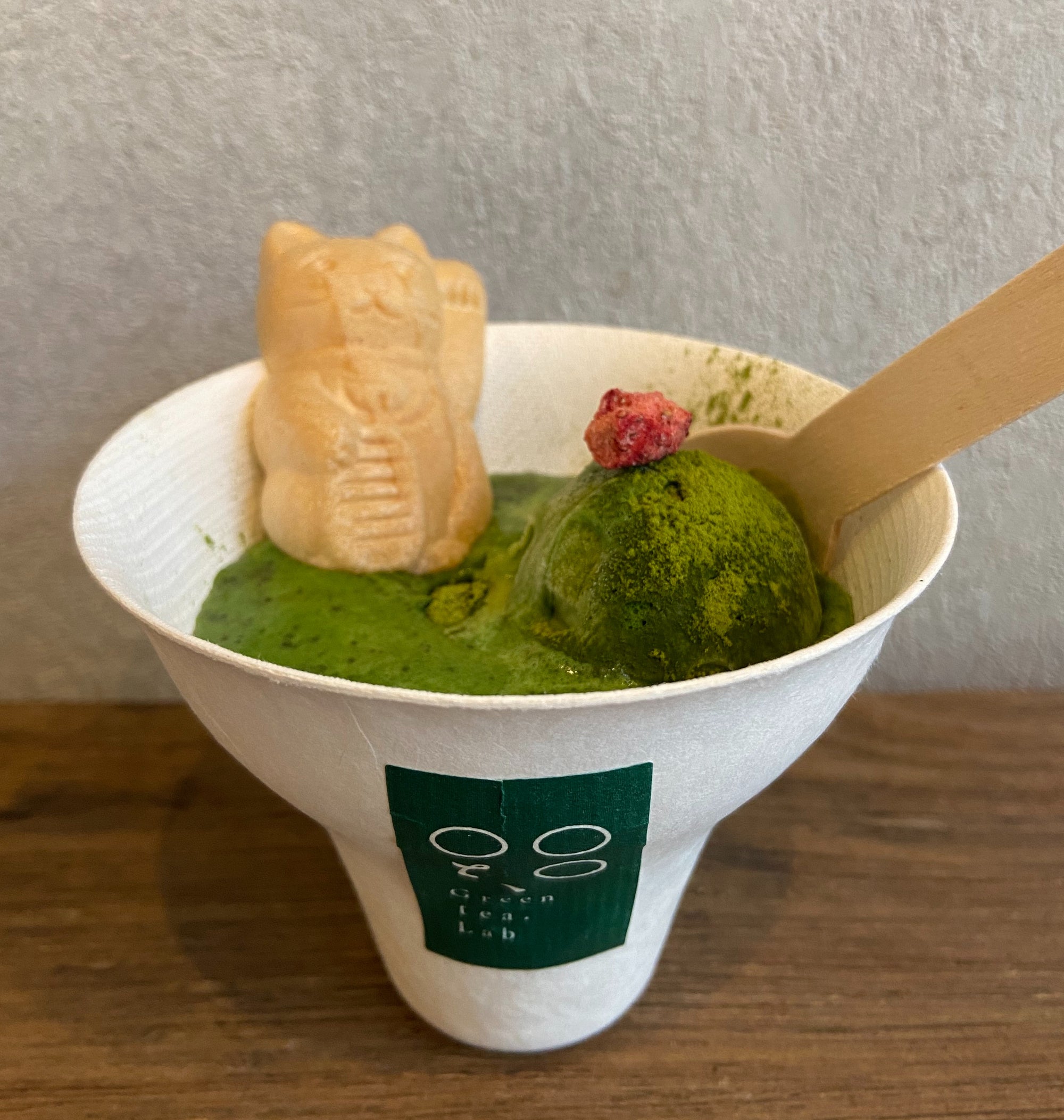 初代が茶の木を植えて90年以上 、生産から販売まで手掛ける「お茶の富澤 」がプロデュースする「 Greentea.Lab」は 、日本茶の新しい魅力を日々研究、研鑽するお店。今回おすすめのお茶は、“ 温茶 ” 。あたたかなおいしさと癒しに包まれる冬にぴったりの日本茶です。ほかに、同じ益城町でお芋の生産から販売までを手掛け、“いきなり団子 ”で有名な「芋屋長兵衛」とコラボしたスイーツも登場。かわいい招き猫のもなかと一緒に召し上がれ♪