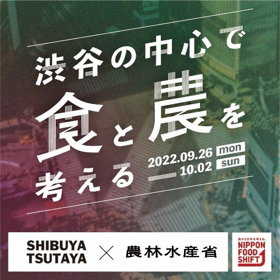 SHIBUYA TSUTAYA(所在地:渋谷区宇田川町21-6 QFRONT)は、9月26日(月)から10月2日(日)まで、“渋谷の中心で食と農を考える” イベント「SHIBUYA TSUTAYAからニッポンフードシフト」を開催いたします。