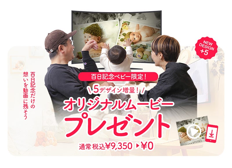 今月限定で、百日記念をご撮影の方に「ベビームービー」プレゼント!