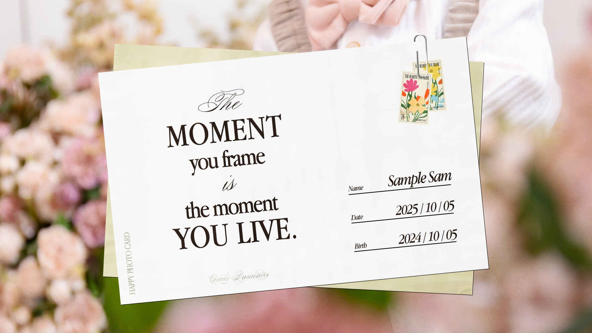 まるで海外のギフトカードのような洗練されたあしらい。映像の冒頭と結びにメッセージカードのような演出を施し、「生まれてきてくれてありがとう」という普遍的な愛を可視化しました。
