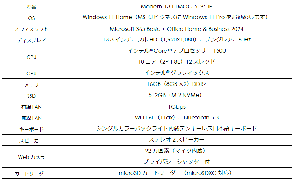 ・Modern 13 F1Mシリーズ製品ページ:https://jp.msi.com/Business-Productivity/Modern-13-F1MX