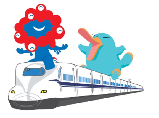 外装は、大阪・関西万博のキャラクター「ミャクミャク」と、JR西日本グループでおなじみのキャラクター「カモノハシのイコちゃん」が皆さまを楽しくにぎやかにお出迎えします。
