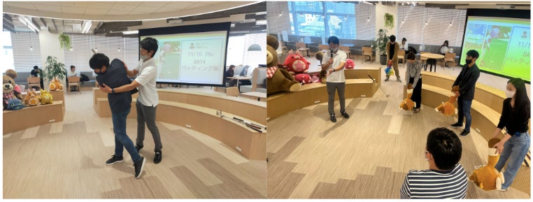 部活動の一つでもあるラジオ体操部と人事部門が連携し、社内で毎日ラジオ体操を実施しています。出社している人だけでなく、在宅勤務者もオンラインでつながり参加しています。