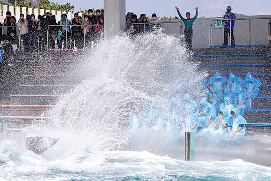 マスクオフでは4年ぶり!日本で唯一シャチの「豪快な水しぶきの祝福」で新入社員27名を歓迎! 鴨川シーワールド 2023年度入社式