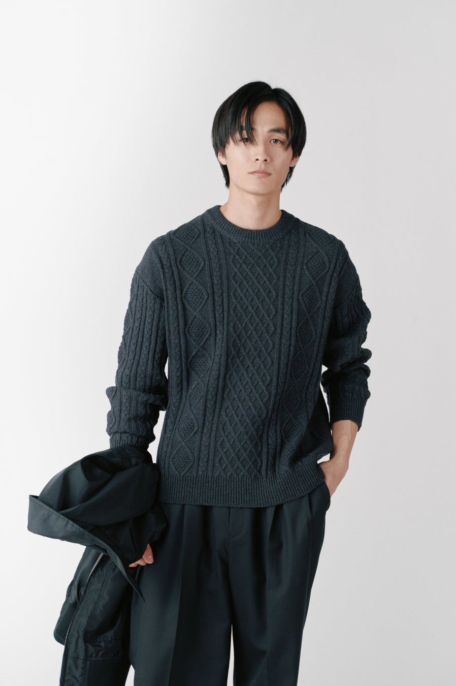 冬から春の装いに欠かせないケーブルニット。立体感のある編み柄で、一枚でも着映えするデザインが魅力です。素材にはコットンを採用し、柔らかな風合いと軽やかな着心地を実現。手洗い可能なウォッシャブル仕様で、日々のコーディネートに自然と馴染む一着。