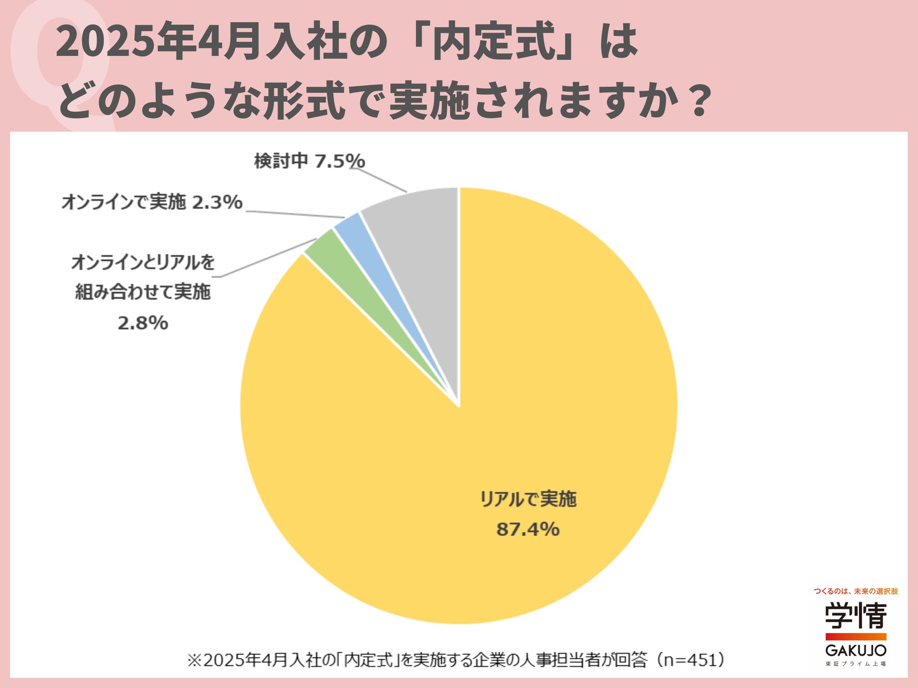 (1)2025年4月入社の「内定式」は、リアルで実施する企業が約9割