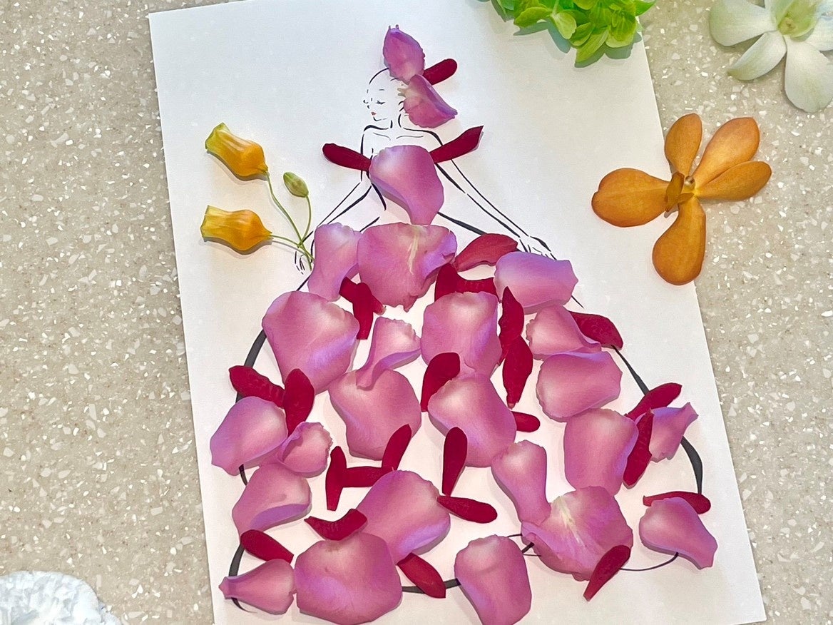 ロスフラワーとはまだ美しい状態で咲いているにも関わらず破棄される花のこと。今回はそんなロスフラワーを活用し、台紙に自由な発想でお花を貼ってアート作品を作っていただきます。
