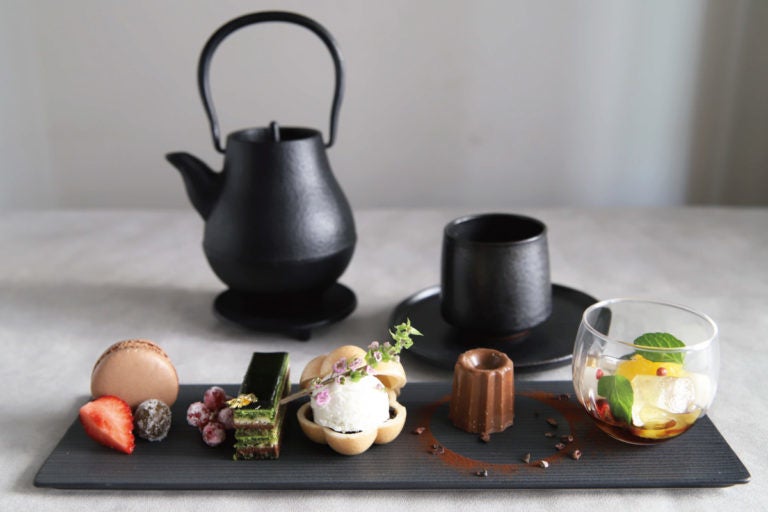 古代エジプトで食されていたといわれる”ドライフルーツ”や”ナッツ”を放香堂の上質な味わいのほうじ茶”火男”が香るショコラや、スパイス×和を取り入れた凸凹あんみつをお楽しみいただけます。