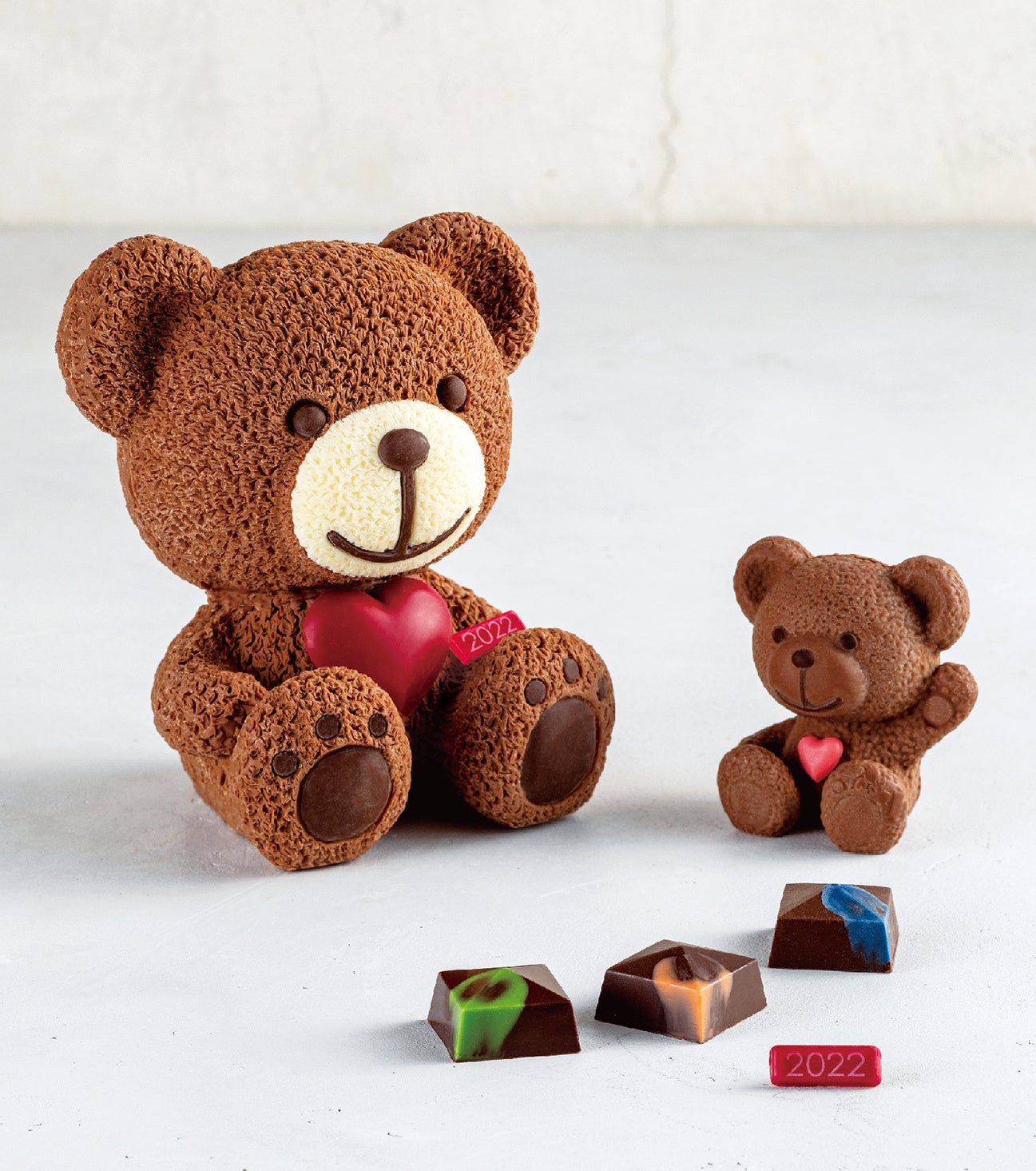 カカオ40%のミルクチョコレートを使った豊かな味わい。熟練職人の手で1点1点、ふわふわの毛並みまで精巧に表現されたベア型ショコラが「2022プレート」付きで登場。