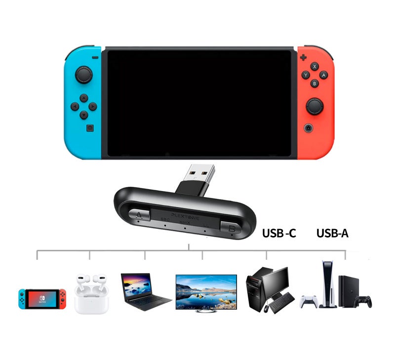 USB-A/USB-Cポートを介してSwitch内のデジタル音声信号をそのままBluetoothで送信します。