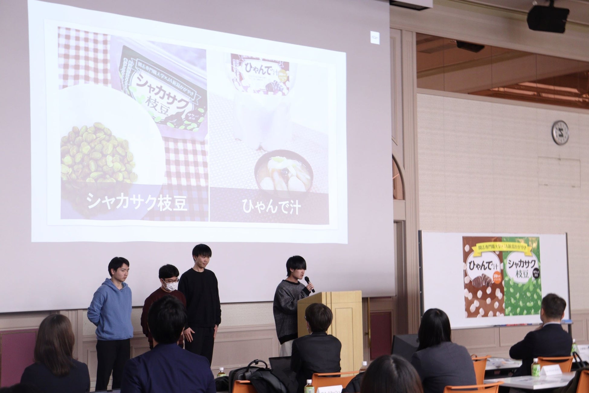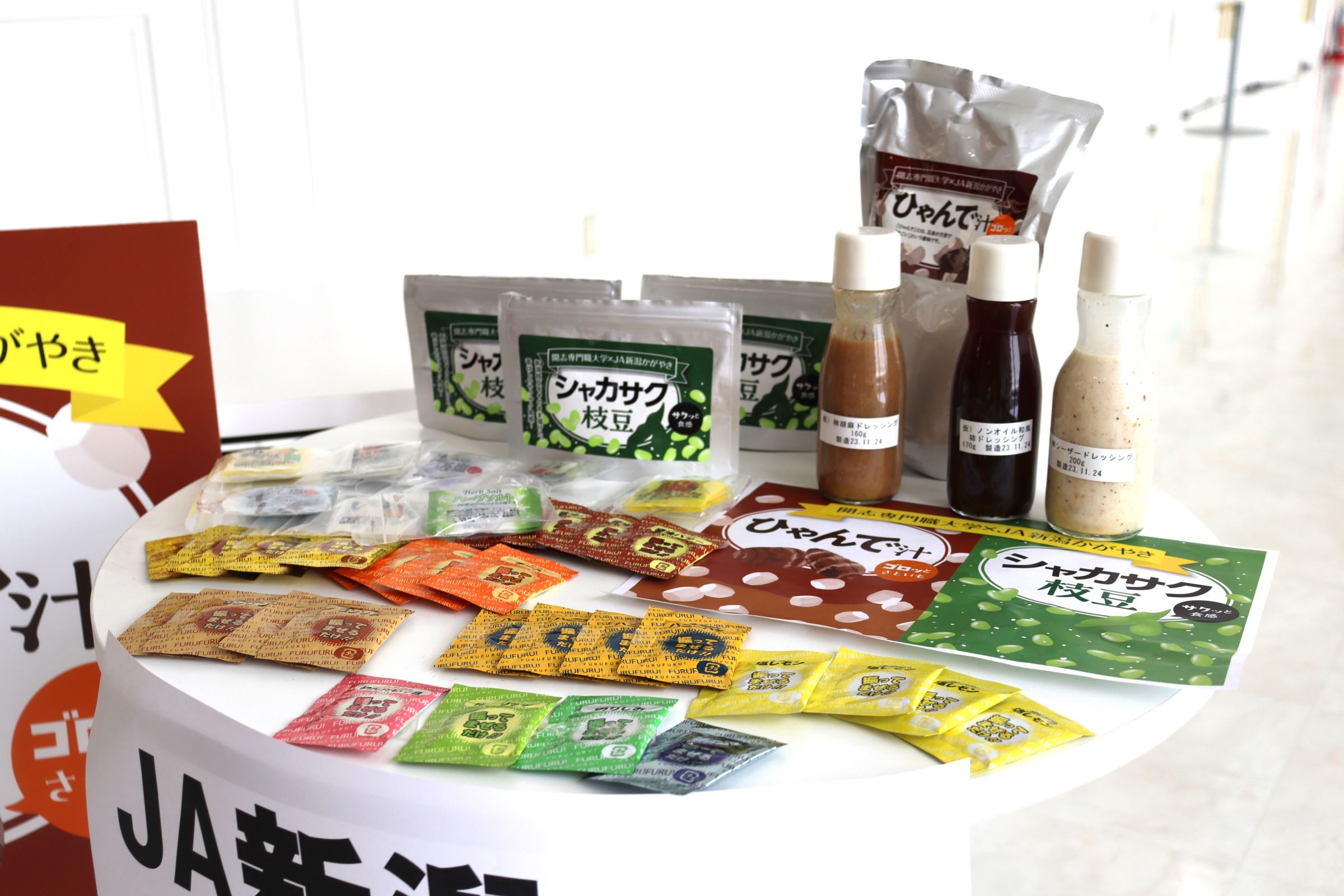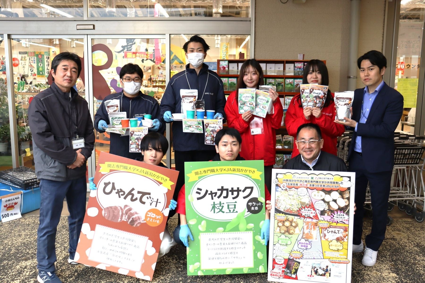 【開志専門職大学】事業創造学部3年生の企業内実習で新潟の地元食材を使い、JA新潟かがやき様と学生が共同開発した新商品「ひゃんで汁」「シャカサク枝豆」が発売されました!