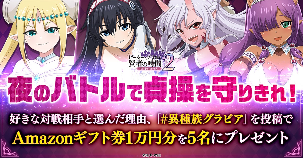 CTW株式会社は、G123の新作ゲームとして「ピーター・グリルと賢者の時間 貞操の守り人2」をサービス開始したことをお知らせいたします。また、これを記念して、ゲーム内外にてリリース記念の豪華キャンペーンを開催いたします。