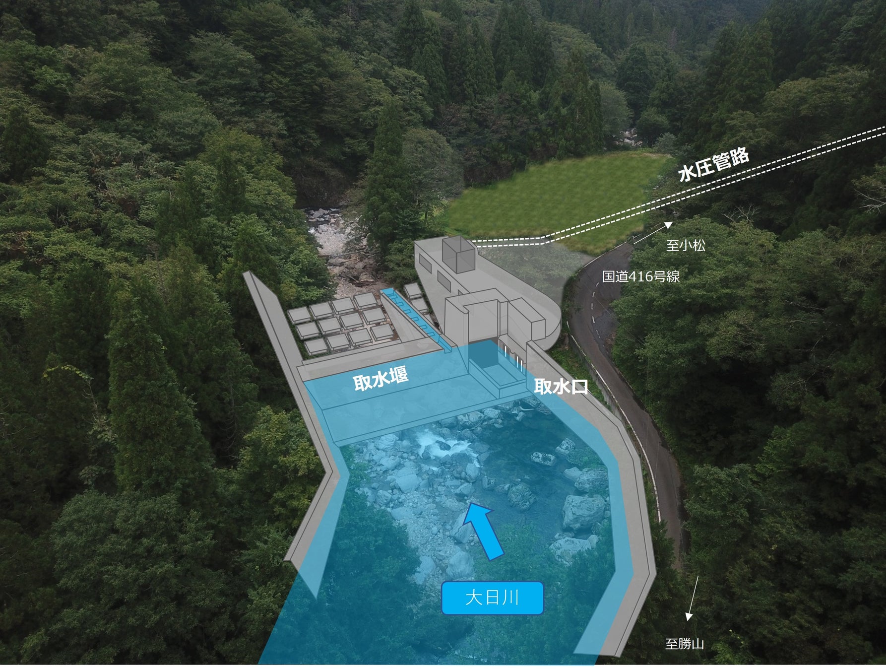 <参考> 北陸電力が新たに開発する水力発電所の位置とイメージ図